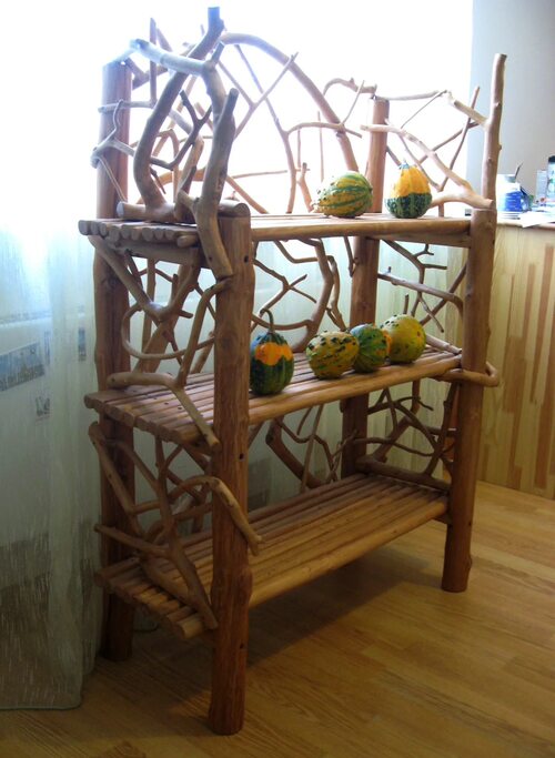 После отделки вы можете украсить этажерку из веток по своему вкусу, добавив на неё растения, свечи, книги или другие декоративные предметы.