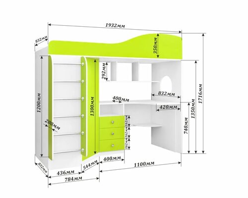 Здесь будет описание различных моделей кроватей двухъярусных со столом и указание их размеров.