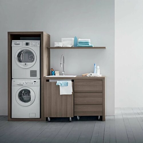 Существует множество вариантов мебели для стиральной и сушильной машины в колонну, от классических до современных. Вы можете выбрать стеллажи, шкафы или специальные конструкции, которые позволят установить стиральную и сушильную машины одну над другой, сэкономив при этом ценное пространство.