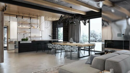 Кухня-гостиная в стиле лофт - это современное и стильное решение для дома. Она сочетает в себе функциональность кухни и уют гостиной, а стиль лофт добавляет интерьеру особый шарм и индустриальный характер.
