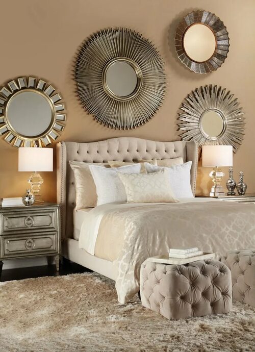 Декоративные зеркала над кроватью могут стать не только функциональным элементом интерьера, но и эффективным декоративным акцентом. Они могут отражать свет, увеличивать пространство и добавлять стиль и характер комнате.