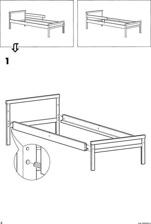 Следуйте инструкции от Икеа по сборке каркаса кровати. Мы также предоставляем подробные фотографии каждого этапа, чтобы вы могли убедиться, что все делается правильно.