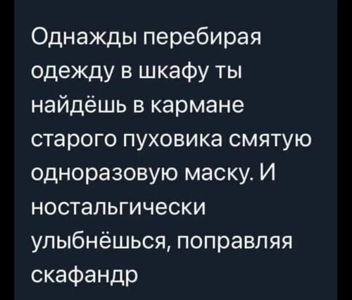 Однажды найдешь в кармане старого пуховика смятую одноразовую маску