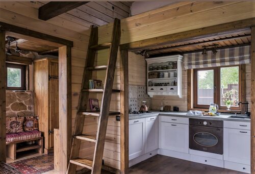 Мини кухня в деревянном доме