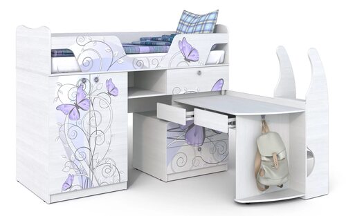 Кровать чердак с бабочками - это удивительное сочетание функциональности и красоты. Этот дизайн позволяет максимально эффективно использовать пространство в детской комнате, создавая уютное место для игр и отдыха.