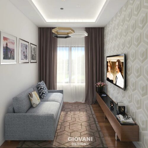 Интерьер гостиной 18 кв.м прямоугольной формы