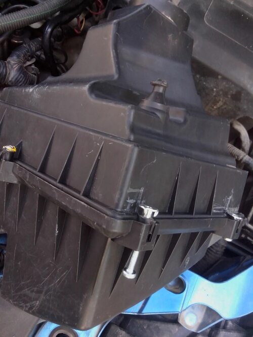 Перед началом работы убедитесь, что двигатель остыл, и отсоедините отрицательный провод аккумулятора. Затем локализуйте короб воздушного фильтра и удалите его из автомобиля.