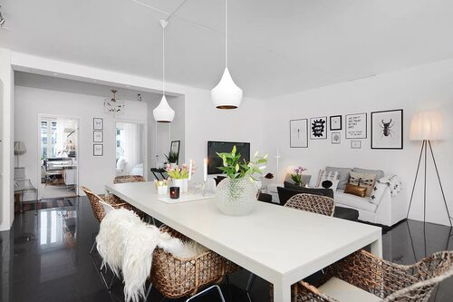 4. Черно-белый стиль. Классическое сочетание черного и белого идеально подходит для дизайна интерьера с белыми стенами. Контрастные цвета создадут элегантный и стильный образ помещения.