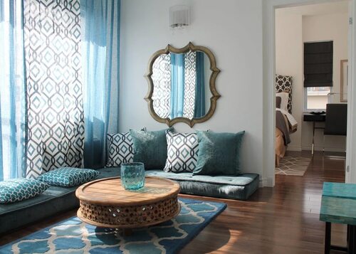 Текстиль играет важную роль в создании марокканского интерьера. Яркие покрывала, ковры и подушки с узорами и кружевами помогут добавить в помещение колорит и уют. Этнические мотивы и яркие оттенки создадут неповторимую атмосферу.