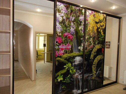 Встроенный шкаф купе с фотопечатью на стекле