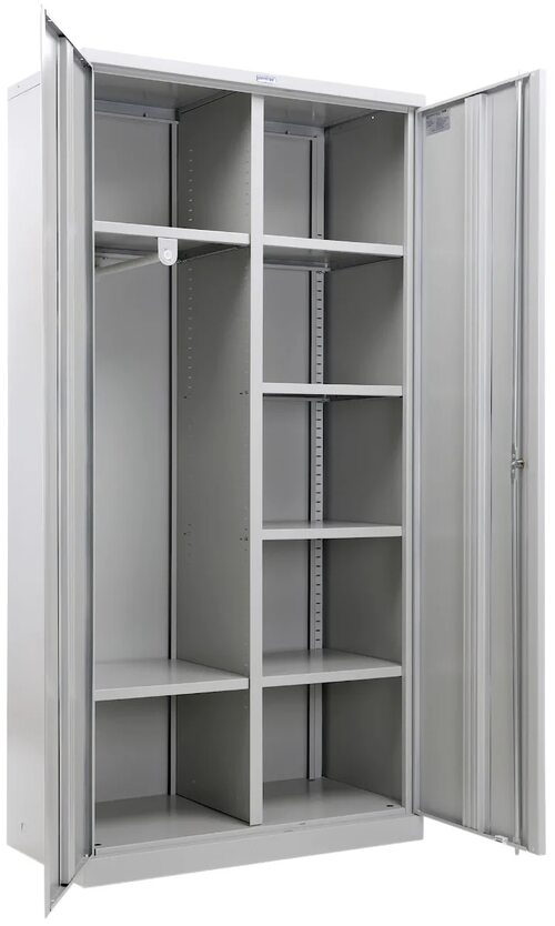 Шкаф Практик AM 1891 2U имеет прочную металлическую конструкцию, что обеспечивает надежность и долговечность. Внутреннее пространство шкафа разделено на несколько полок, что позволяет удобно организовать хранение различных предметов. Дверцы шкафа оснащены замком для обеспечения безопасности хранения.