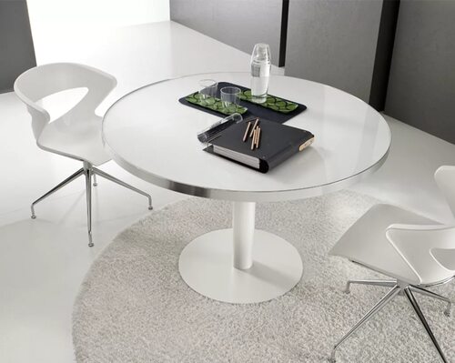 Круглый стеклянный офисный стол отлично подходит для проведения деловых встреч, переговоров и рабочих встреч. Он также может использоваться в качестве рабочего места для одного или нескольких сотрудников.