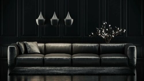Черный фон и черный диван в интерьере