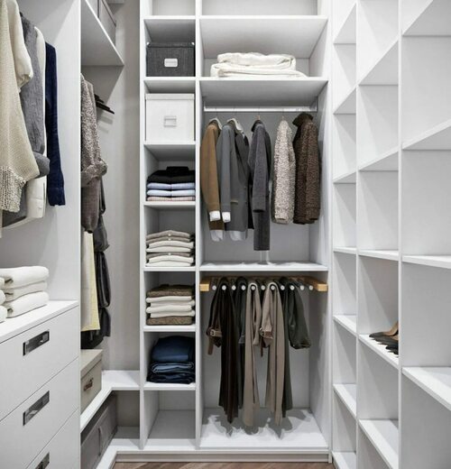 Первый шаг к созданию удобной гардеробной - это правильная организация пространства. Вы можете использовать различные шкафы, полки, ящики и вешалки, чтобы разместить вашу одежду и аксессуары так, чтобы было удобно и практично.