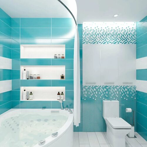 При создании дизайна ванной в бирюзовых тонах важно правильно подобрать отделочные материалы. Плитка и керамогранит в бирюзовых оттенках помогут создать яркий акцент в интерьере. Кроме того, стоит обратить внимание на стеклянные и зеркальные элементы, которые добавят игры света и пространства.
