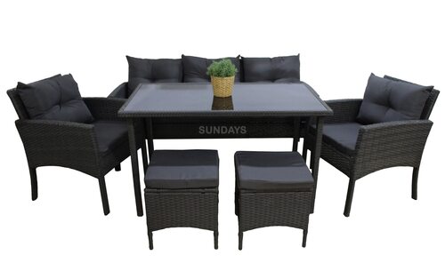 Комплект садовой мебели sundays luc 75 выполнен из высококачественных материалов, обладает прочной конструкцией и устойчив к воздействию погодных условий. Удобные подушки и стильный дизайн делают этот комплект отличным выбором для любого сада или террасы.
