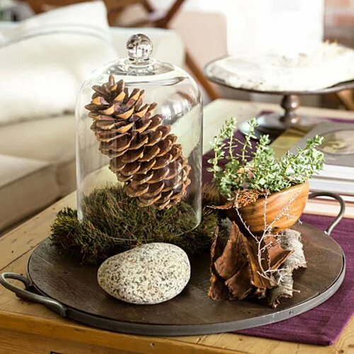 Сосновые шишки можно использовать в качестве декоративных элементов в интерьере. Их можно разместить в стеклянных банках, на подносах или просто разбросать по полкам и столикам. Это прекрасный способ добавить натуральный акцент в домашний декор.