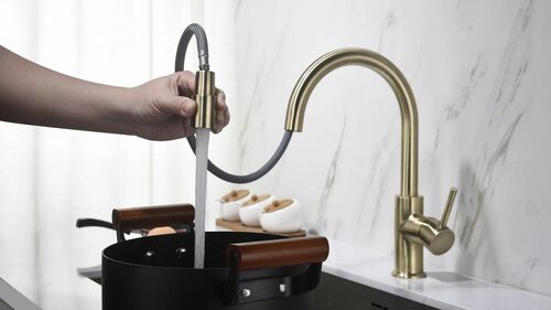 Смеситель для кухни с выдвижным изливом в бронзовом цвете является стильным и функциональным элементом вашей кухни. Он предлагает удобство использования и привлекательный внешний вид, который подчеркнет дизайн вашего интерьера.