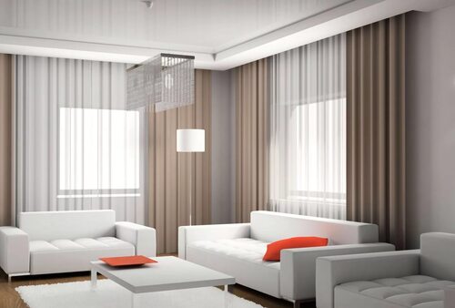 При выборе штор для зала в современном стиле важно учитывать общий цветовой фон интерьера. Нейтральные оттенки, такие как белый, серый, бежевый или черный, часто используются для создания современного и стильного образа. Также популярны яркие цвета, которые могут стать ярким акцентом в интерьере.