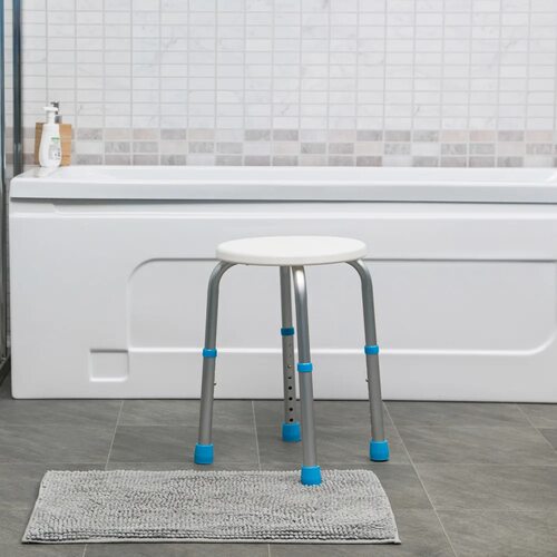 Табурет для ванны lux 505 с голубыми насадками на ножки - отличное решение для комфорта в ванной комнате. Этот стильный и удобный аксессуар поможет вам расслабиться и насладиться ванной процедурой.