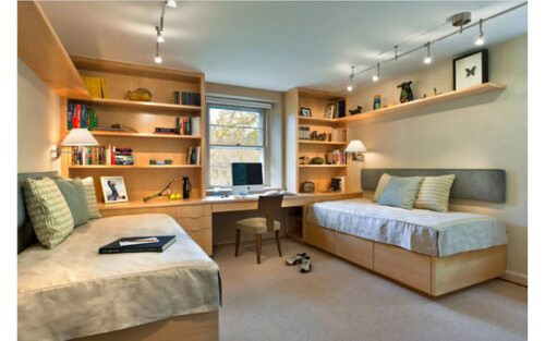 Планировка маленькой комнаты для двоих детей с двухъярусной кроватью