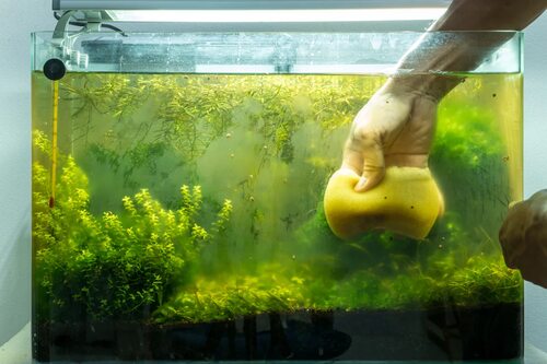 После чистки убедитесь, что все водоросли удалены, и установите фильтр для воды, чтобы предотвратить повторное появление зелени на стенках аквариума.