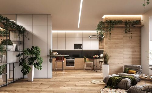 Одной из основных особенностей экологичного стиля является использование природных материалов, таких как дерево, камень, ротанг, бамбук и хлопок. Эти материалы придают интерьеру естественность и теплоту, создавая атмосферу близкую к природе.