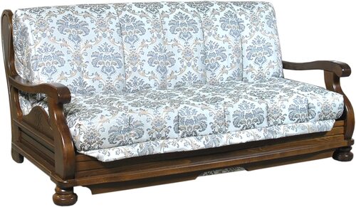Этот диван обладает удобной раскладной конструкцией, которая позволяет легко превратить его из уютного места для отдыха в просторную спальную зону. Деревянные подлокотники добавляют особый шарм этой модели и придают ей особый стиль.