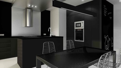 Кухня с черной мебелью может выглядеть элегантно и современно, особенно если правильно подобрать обои. Черный цвет мебели создает контраст и позволяет обои стать центральным элементом дизайна.