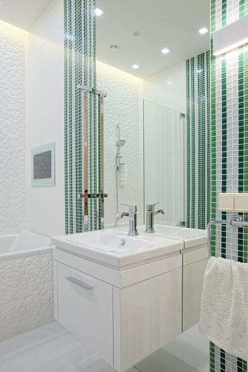 Для более оригинального вида можно использовать текстурные вертикальные полосы. Это может быть камень, дерево, или другие материалы, которые добавят ванной комнате уют и природную красоту.