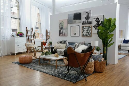 Пушистые ковры, мягкие пледы, теплые шерстяные одеяла и мягкие подушки создают атмосферу уюта и комфорта в скандинавском интерьере. Текстильные элементы также могут служить яркими акцентами, добавляя цвет и текстуру в помещение.