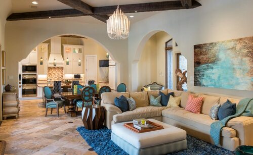 В марокканском стиле интерьера квартиры часто используются яркие краски, такие как синий, зеленый, оранжевый и красный. Также характерны узоры в виде геометрических фигур, узоров и арабесок. Для создания атмосферы востока используются мягкие подушки, ковры с выразительными узорами и драгоценные ткани.
