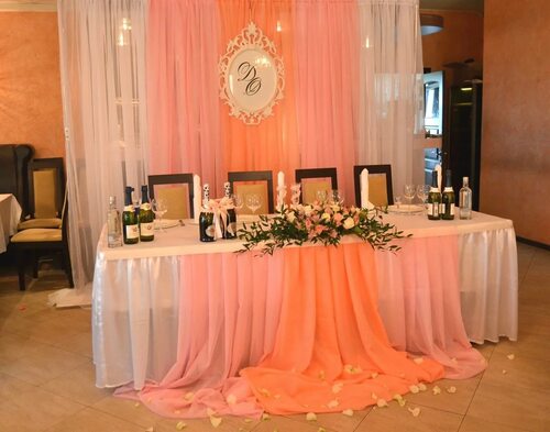 Оформление свадебного зала в персиковом цвете может придать вашему торжеству нежность и романтику. Этот пастельный оттенок идеально подходит для создания уютной и элегантной атмосферы.