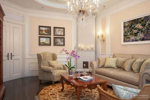 Бежевый интерьер гостиной в классическом стиле предлагает идеальное сочетание элегантности и уюта. Фотографии таких интерьеров могут вдохновить на создание собственного уютного уголка в классическом стиле.