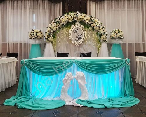 Для оформления зала на свадьбу в мятном цвете используйте мятные ленты, цветочные композиции с зелеными акцентами и мятные свечи. Не забудьте о мятных деталях в столовом сервизе и текстиле.
