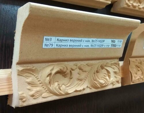 Далее происходит сборка карнизов, при необходимости декорирование и окраска. После завершения всех этапов получаются готовые карнизы из МДФ, которые можно установить в интерьере.