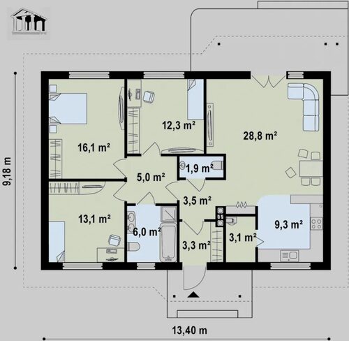 Проекты одноэтажных домов на 5 спален