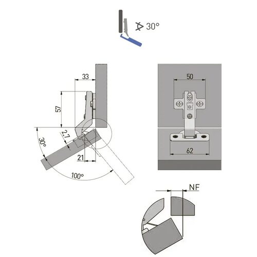 Петля мебельная угловая 30 градусов - это важный элемент при изготовлении мебели, позволяющий обеспечить плавное открывание и закрывание дверей при установке под углом 30 градусов. Этот тип петель широко используется в производстве кухонной и офисной мебели, а также в других сферах.