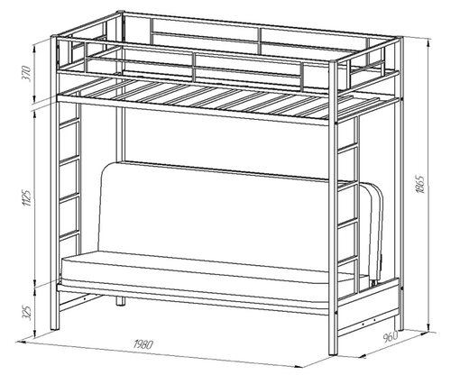 Размеры двухъярусной кровати с диваном