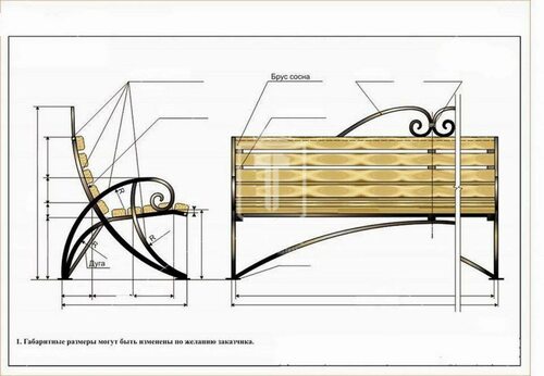 Чертеж лавочки из профильной трубы со спинкой 40/20