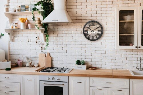 Белая кирпичная стена на кухне