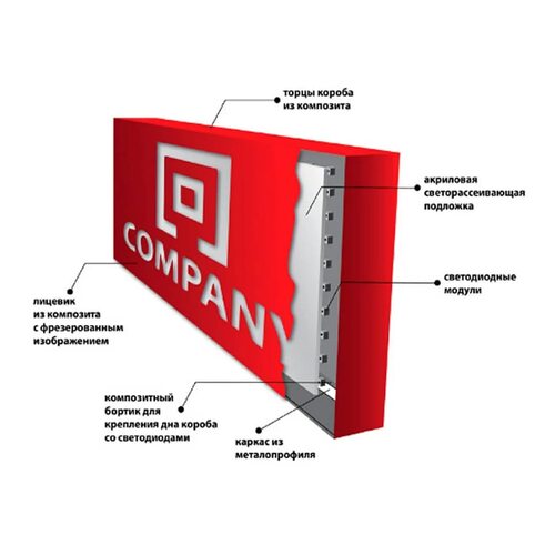 Коробовая вывеска представляет собой конструкцию, обычно изготовленную из алюминия или пластика, оснащенную внутренним освещением. Это позволяет вывеске быть заметной как днём, так и ночью. На вывеске может быть нанесен логотип компании, контактная информация или рекламное сообщение.