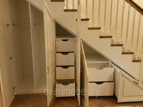 Фотографии лестниц на второй этаж с ящиками и шкафами