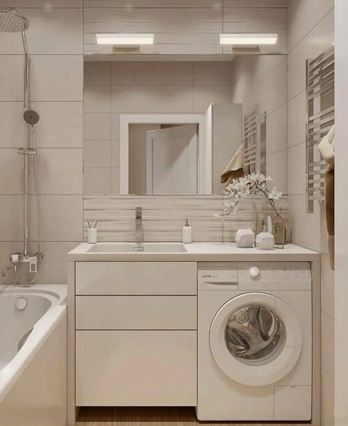 Одним из ключевых аспектов при планировке маленькой ванных комнаты с установкой стиральной машины является оптимизация пространства. Важно выбирать компактные и функциональные элементы мебели, а также использовать каждый сантиметр доступной площади максимально эффективно. Например, можно рассмотреть варианты установки стиральной машины под раковиной или в нише, чтобы освободить дополнительное пространство.