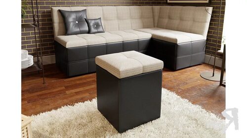 2. Угловой пуфик с вместительным ящиком для хранения кухонных принадлежностей.