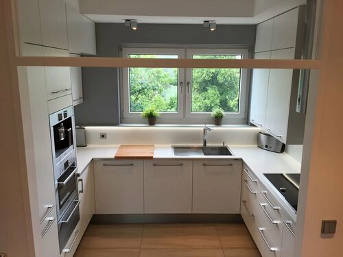 Столешницы, рабочая зона, хранение посуды и продуктов - все это должно быть продуманно и удобно расположено. Не забывайте также организовать зону для приема пищи, если это возможно в вашем кухонном пространстве.