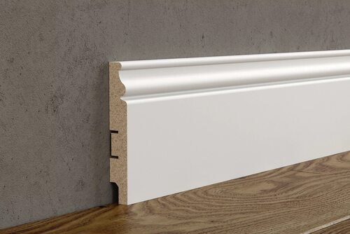 МДФ (медиум-денсити файбербоард) - это плитный материал, изготовленный путем прессования древесных волокон с добавлением синтетических смол. Он отличается высокой прочностью и устойчивостью к влаге, что делает его отличным выбором для помещений с повышенной влажностью, таких как ванные комнаты и кухни. Плинтус из МДФ имеет гладкую поверхность, что облегчает его покраску в любой цвет.