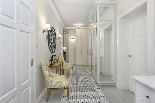 Выбор белой мебели для прихожей создаст ощущение легкости и воздушности. Белые шкафы, тумбы и полки отлично впишутся в интерьер прихожей, придавая ему стильный и современный вид. Дополните интерьер белыми аксессуарами, такими как вешалки, зеркала, рамки для фотографий и декоративные элементы.