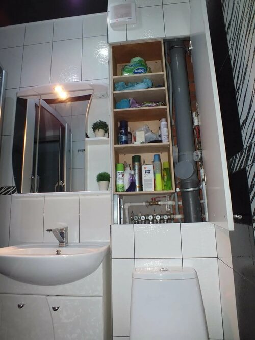 Небольшая ванная комната с пеналом