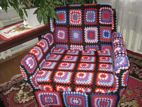 Вязаный чехол на кресло